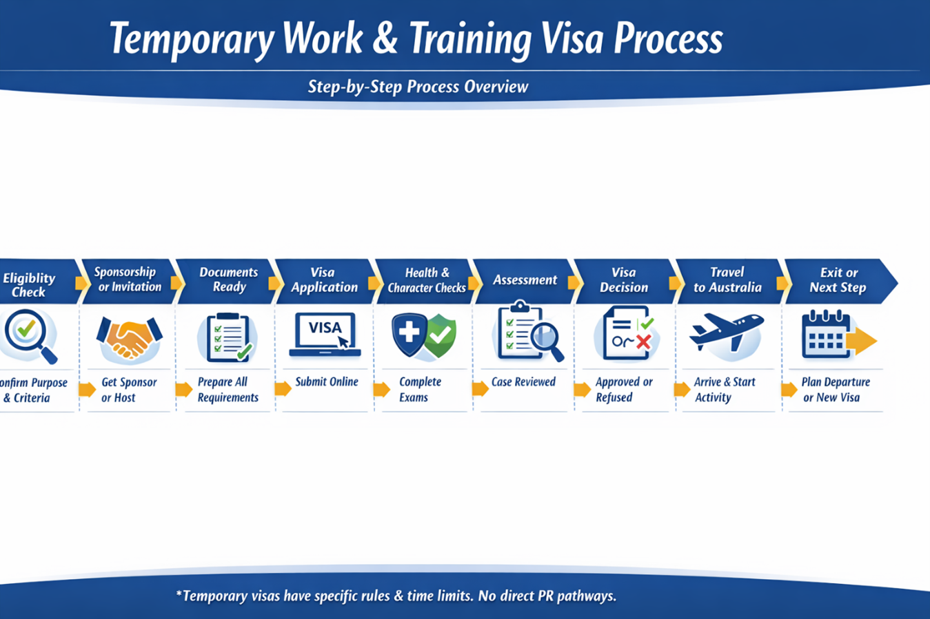 Temporary Work & Training Visas are purpose-specific and time-limited. Eligibility and visa outcomes are determined solely by the Australian Department of Home Affairs. Information provided is general and advisory only.